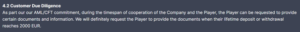 Het belangrijkste punt voor spelers staat onder artikel 4.2 “Customer due diligence” van het AML en KYC beleid. Dit artikel gaat in op het verificatieproces. Hierin wordt gesteld dat het verificatieproces in ieder geval in gang wordt gezet op het moment dat er €2.000 aan stortingen of opnames worden gedaan.