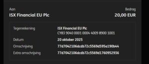 Het was nog mogelijk dat de overboeking geweigerd werd door de bank, dit bleek echter niet zo te zijn. Voor het onderzoek maakten we gebruik van de ING. Ook hierbij verliep de verificatie, de overboeking en de uiteindelijke storting binnen enkele minuten.